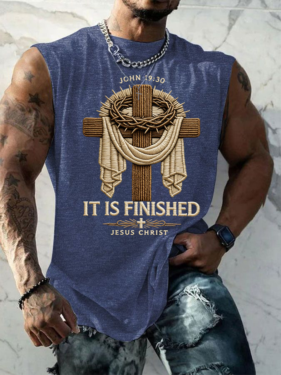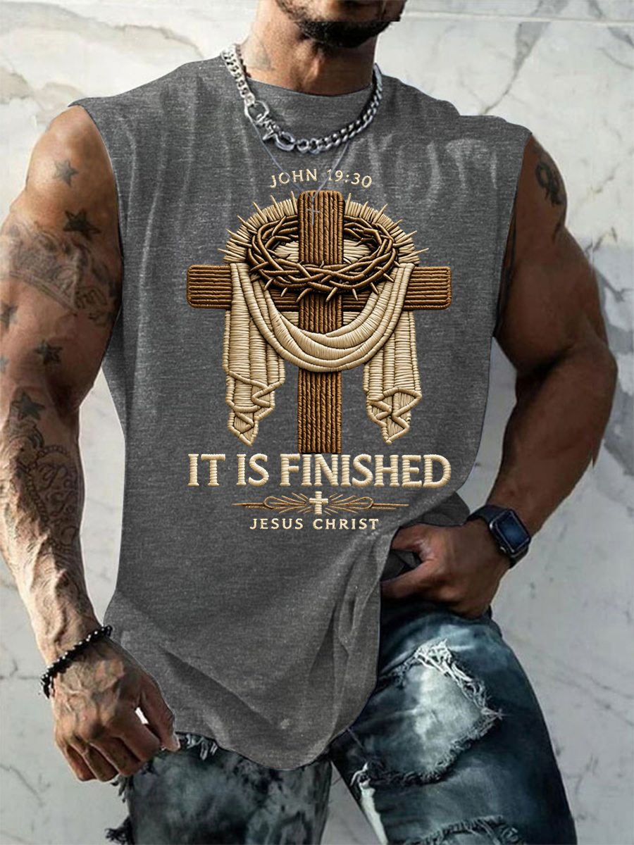 Men's He Is Risen It’s Finished Jesus Christian Cross Print Casual Tank Top