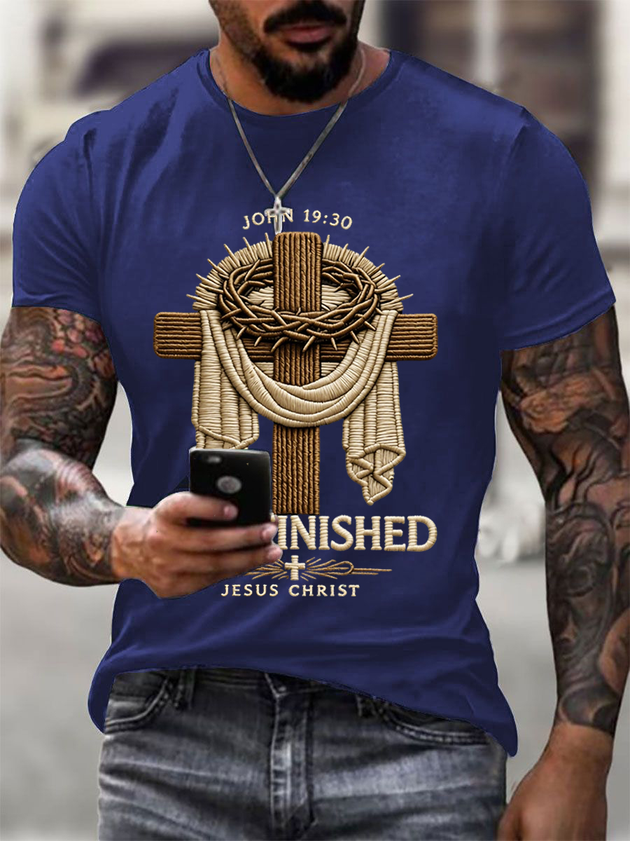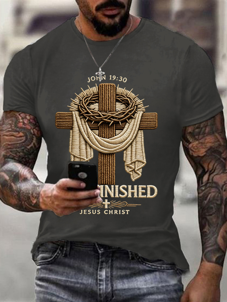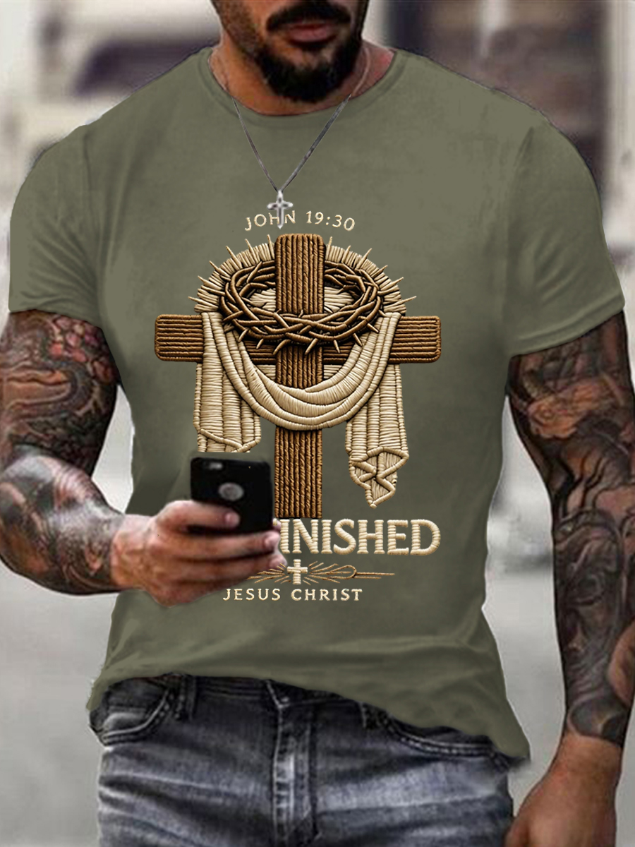 Men's He Is Risen It’s Finished Jesus Christian Cross Print Casual Tee